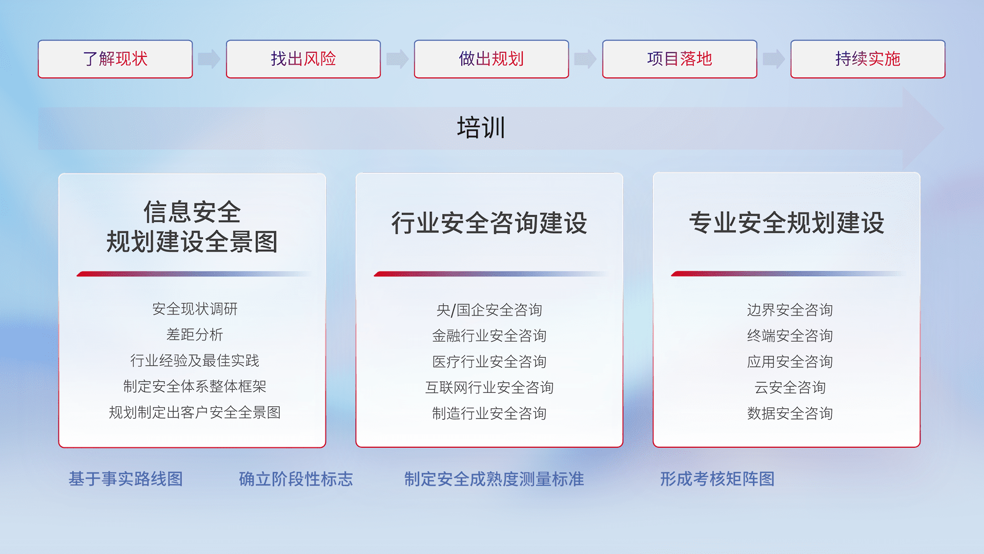 梳理客户信息安全现状调研、、、、差距分析结果,,结合行业先进经验及最佳实践,,制订客户的信息安全管控体系总结架构,,最终形成一个完整的客户信息安全规划与建设的全景图。。。。