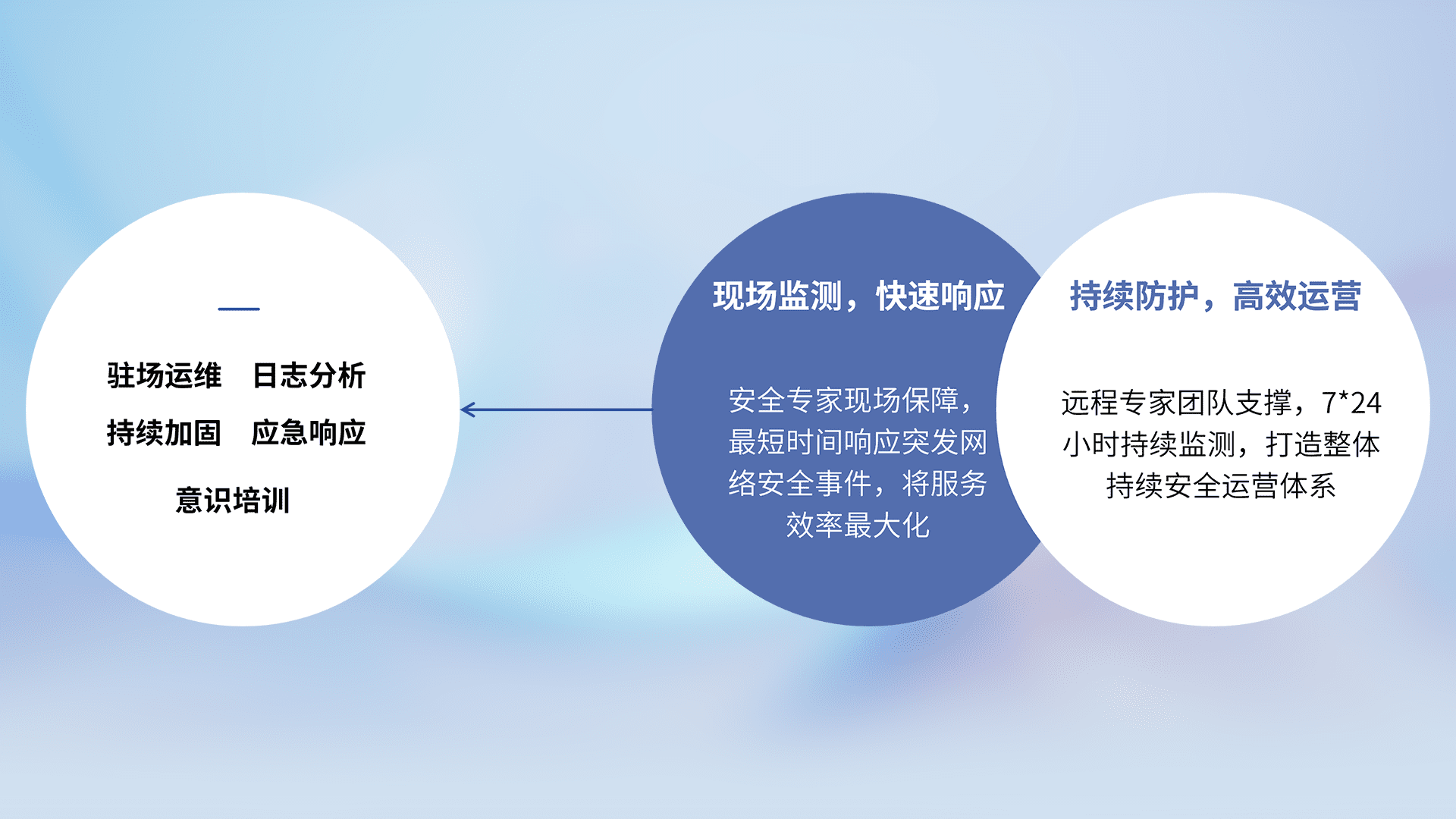 针对客户行业特性,,,提供专属的一站式安全管理服务,,,,帮助客户全面感知网络空间威胁,,,通过安全专家的线上、、、线下防护支持,,,实现风险闭环,,将安全保障常态化,,,为客户打造常态化安全运维运营服务。。
